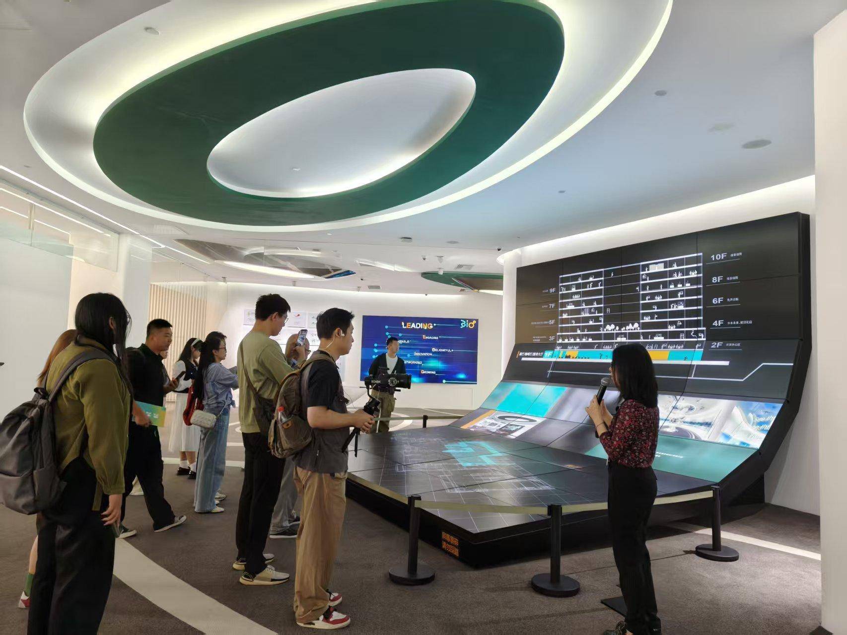 经杨莉讲解,媒体调研团了解到,新生巢创新中心于2019年成立,首批运营载体位于生命园医科中心2号楼,建筑面积约3.2万平方米,2021年10月建成投用:一层为行业展示与产业活动服务中心,二、三层为共享孵化空间,满足初创公司拎包入驻,快速启动办公和实验,四到十层提供可自由迭代定制化功能实验空间,助力企业加速成长。